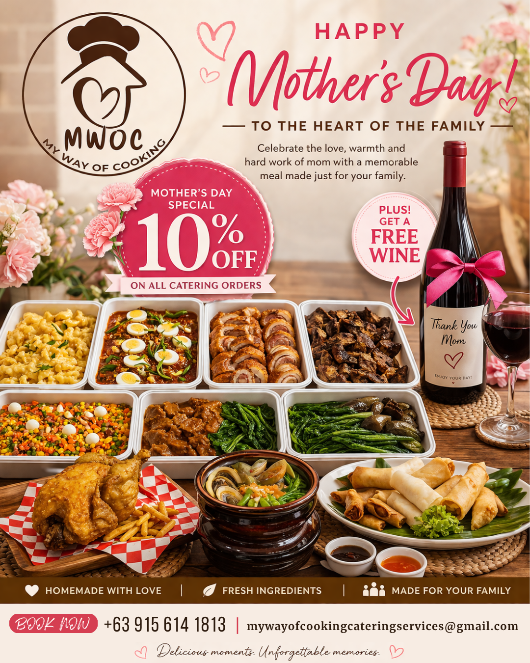 Planning a wedding, birthday, debut, family gathering, or office event? Let MWOC (My Way of Cooking Catering Services) take care of the food so you can just relax and enjoy with your guests! No need to stress about cooking, serving, or cleaning up—we got you covered! 💕